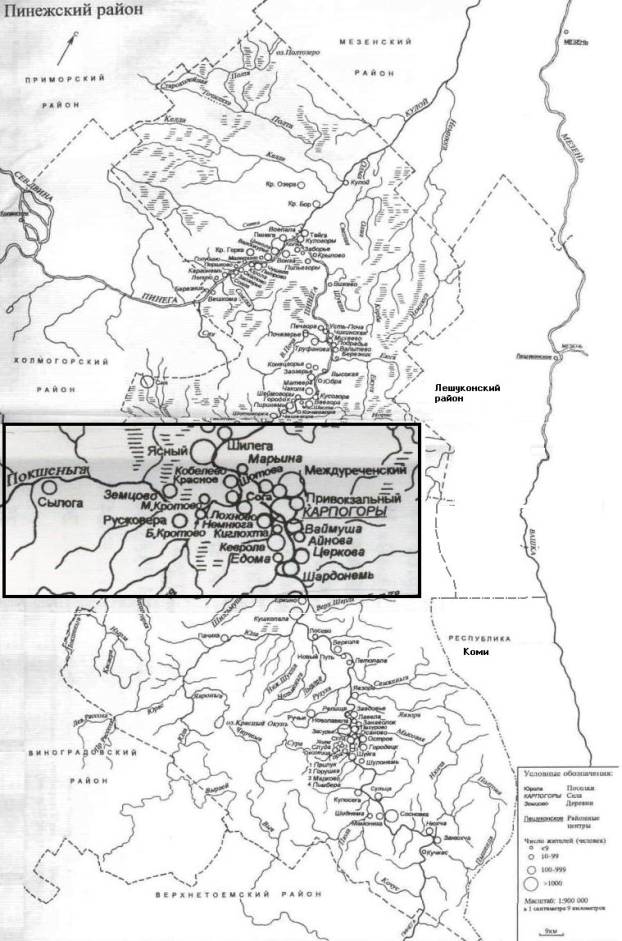 Пинегой, мы условно понимаем ту часть территории бассейна реки, где в Пинегу